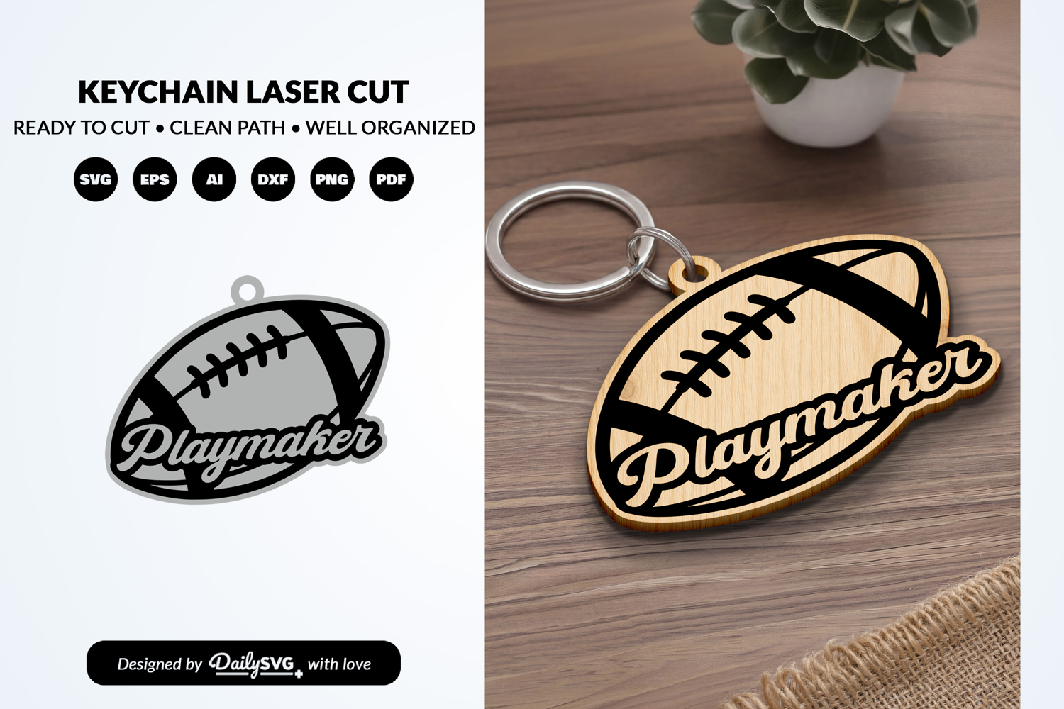 Sport Keychain Laser Cut SVG – American Football