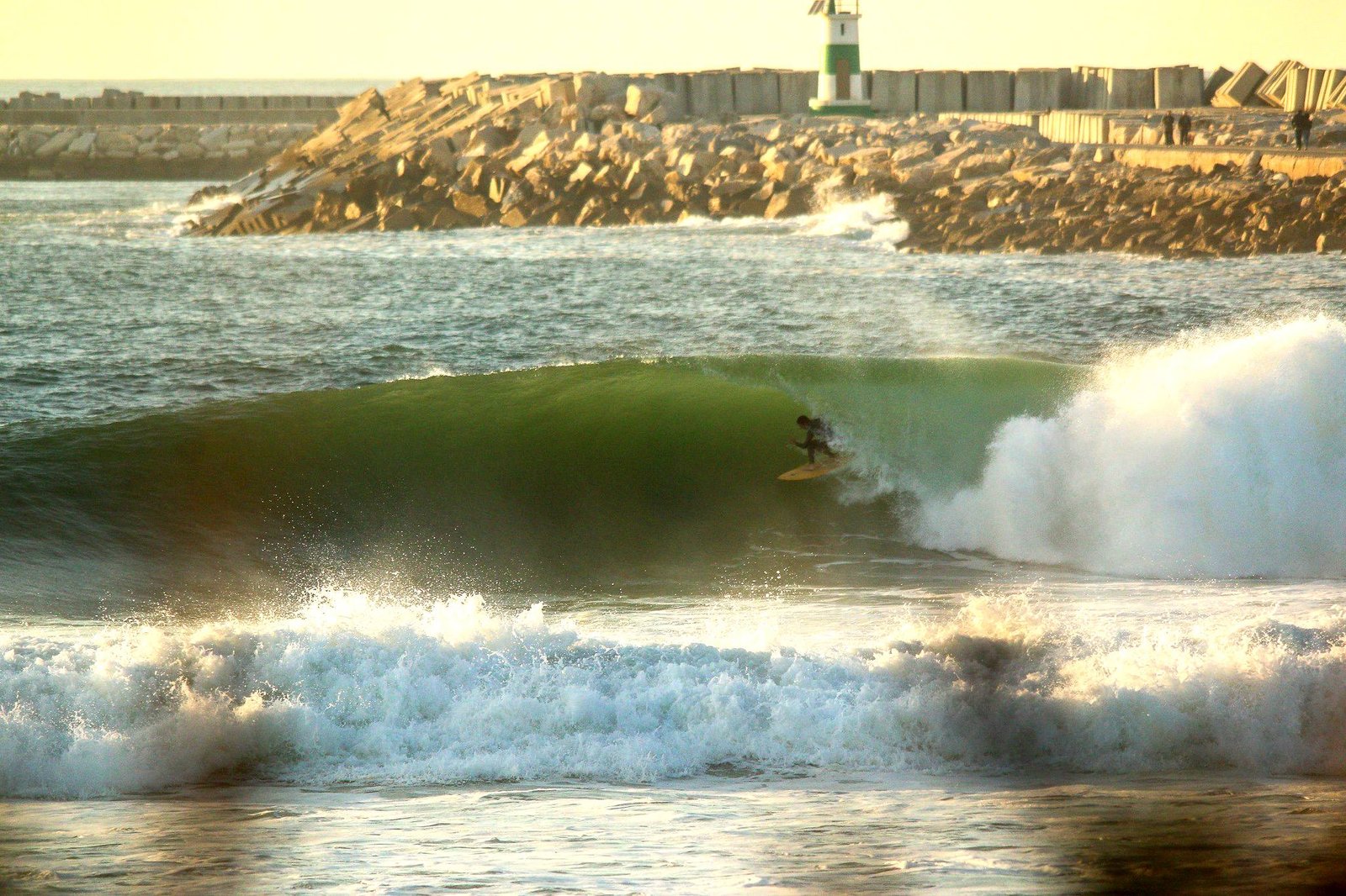 Praia do Cabedelo is an enticing beach break known for its pristine, crystal-clear waters, lush pine tree surroundings, and a consistent supply of powerful waves, making it a top destination for both tourists and surfers in Figueira da Foz. You'll find quality, rideable waves during the winter months, but catching them is a challenge that not only demands surfing expertise but also a bit of luck for an exhilarating adventure. On the flip side, during the summer, the waves become disappointingly small. The best swells originate from the west and northwest, with ideal surfing conditions created by a combination of easterly and northeasterly off-shore winds. This beach break can get crowded, but with a little exploration, you can discover your own quality wave amidst the action.