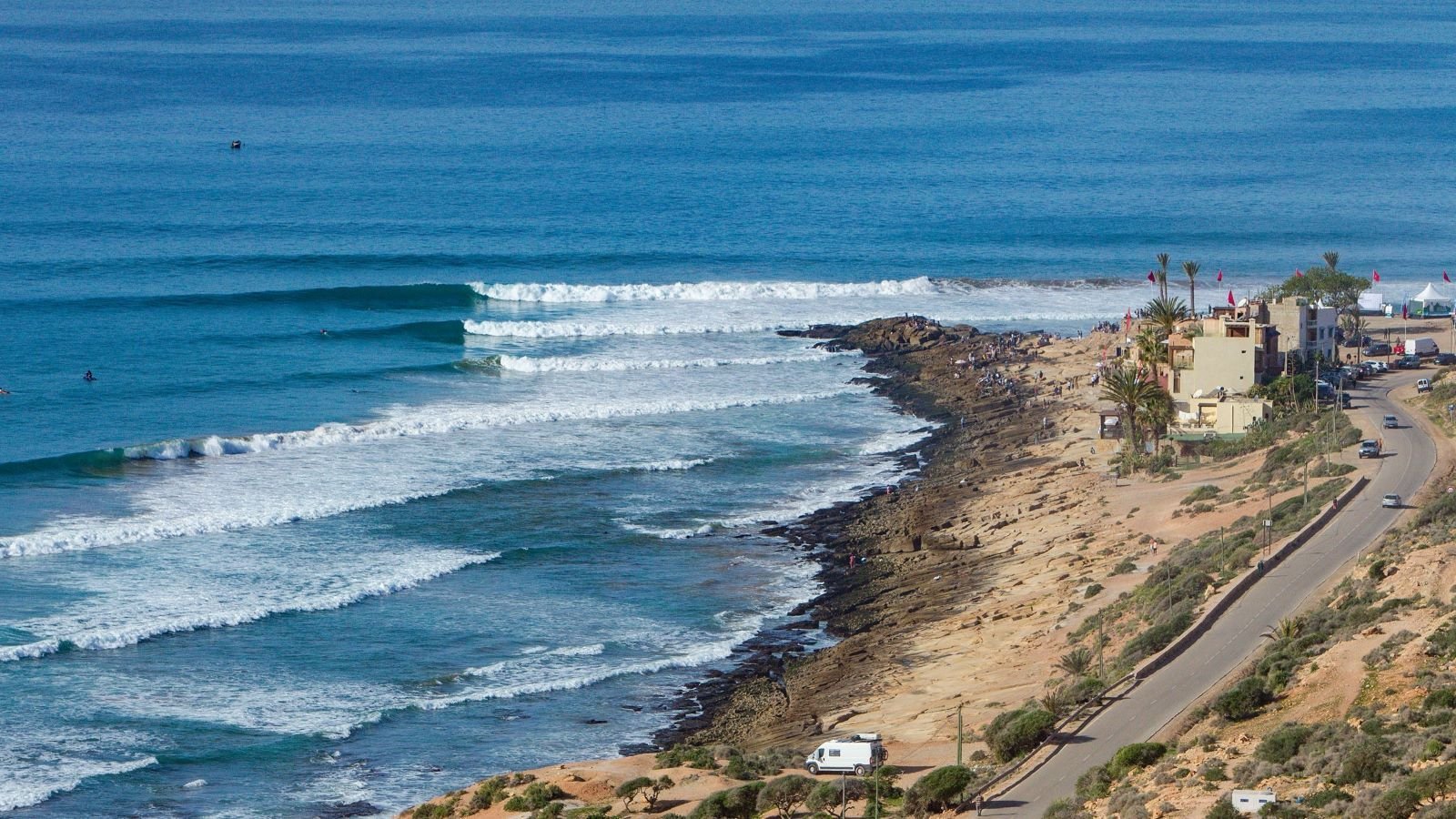 The place is located 30 km south of Essaouira. The northern tip of the shore is easily accessible and features a reef section that occasionally delivers some cool and hollow waves, while the rocky floor in the south keeps the waves in good form.