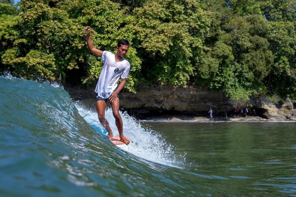 Batukaras is another exciting surfing spot with similar-quality waves. It is a beachside village about 29 km west of Pangandaran Beach. It takes only 45 minutes with a motorbike ride.