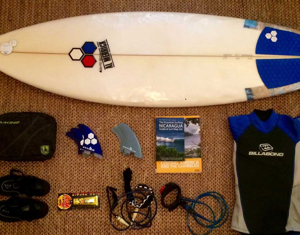 Some items that are optional and may be seasonal are the wetsuits, wetsuit booties, and the board bag. The wetsuits are always good when the weather is fairly cold, and the water is as well.