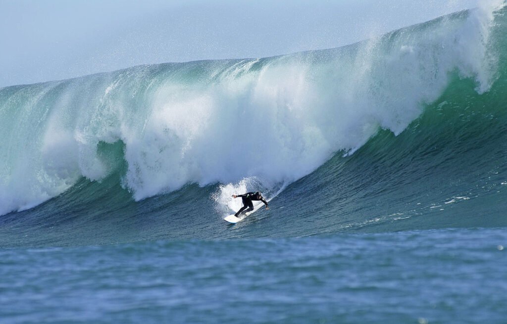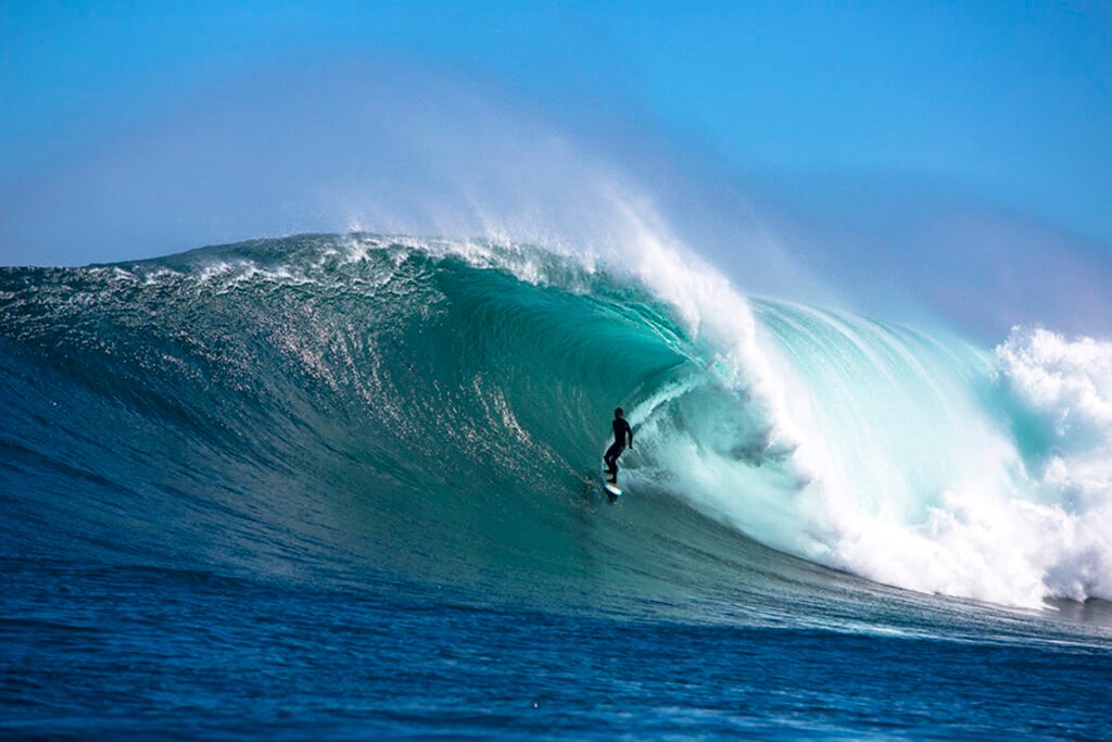 It’s not a complete “safe zone,” as you can find sharks and foggy weather in cooler months. When it’s working, these massive swells can go from 25-60 feet, kinda like a giant beast chasing ya.Â