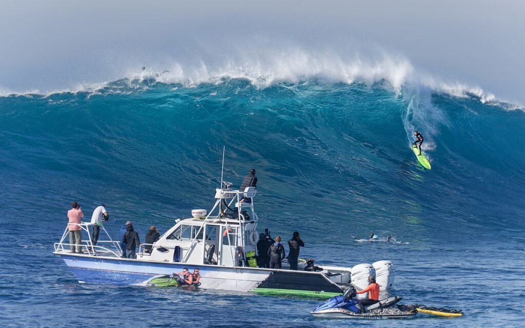 John Potterick, John Roberson, and John Lemus were the first to ride these super-fast waves and named it “Jaws” in 1975, inspired by a Hollywood movie, “Jaws.” Following the media frenzy, the spot got swarmed with enthusiasts by 2004, creating a bit of a crowd. The best spots for catching the action are the cliffs, where lookouts and professional photographers hang out.
